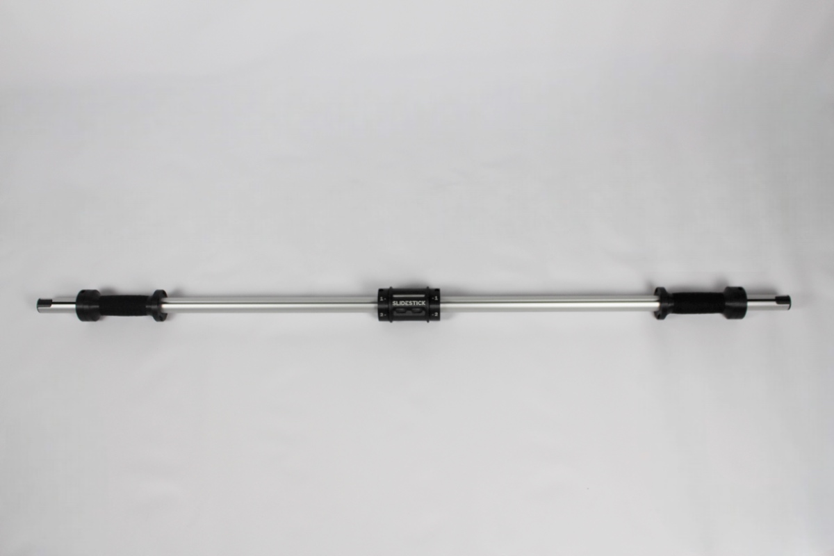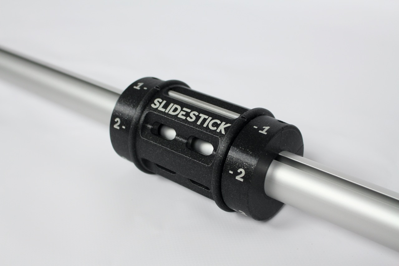 Der SlideStick besteht aus einer robusten Aluminumstange mit einer Länge von etwa 145 cm. Den Widerstand kannst du von Stufe 1 bis 10 einstellen. Das Griptape an den Handgriffen sorgt außerdem für den perfekten Halt.